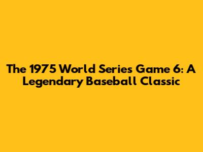 Hey baseball fans, let's dive deep into one of the most epic games in World Series history: Game 6 of the 1975 World Series. This wasn't just any game, guys; it was a nail-biting, back-and-forth thriller that had everyone on the edge of their seats. We're talking about a contest that perfectly encapsulated the magic of baseball, pitting two incredible teams against each other in a battle that would go down in the annals of the sport. The Cincinnati Reds, with their "Big Red Machine," were facing off against the Boston Red Sox, led by the charismatic Carlton Fisk. This series itself was already a barn burner, but Game 6? That was something else entirely. It's the kind of game that makes you fall in love with baseball all over again, filled with drama, incredible plays, and a finish that is etched into the memories of fans forever. We'll be breaking down the key moments, the standout performances, and why this particular game is still talked about with such reverence decades later. So grab your popcorn, settle in, and let's relive the glory of the 1975 World Series Game 6.