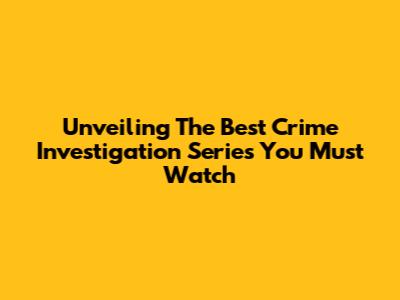 Unveiling The Best Crime Investigation Series You Must Watch