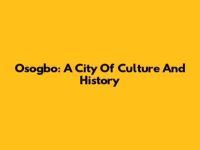 Osogbo: A City Of Culture And History