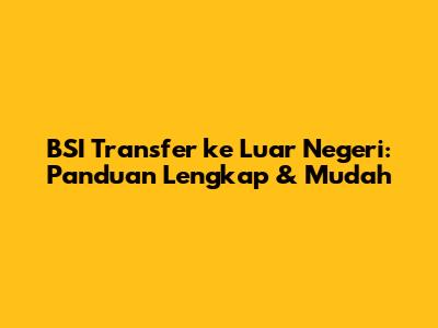 Guys, lagi cari tahu soal BSI transfer ke luar negeri? Kalian berada di tempat yang tepat! Artikel ini bakal kasih tahu semua hal yang perlu kalian ketahui tentang transfer dana internasional via Bank Syariah Indonesia (BSI). Mulai dari syarat, cara, biaya, hingga tips agar transfer kalian sukses dan aman. Jadi, siap-siap untuk dapat informasi lengkap yang bakal bikin proses transfer dana ke luar negeri jadi lebih mudah!