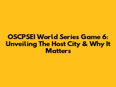 OSCPSEI World Series Game 6: Unveiling The Host City & Why It Matters