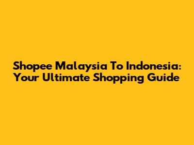 Shopee Malaysia To Indonesia: Your Ultimate Shopping Guide