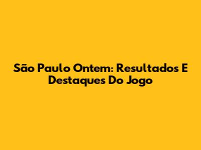São Paulo Ontem: Resultados E Destaques Do Jogo