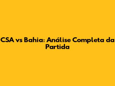 CSA Vs Bahia: Análise Completa Da Partida