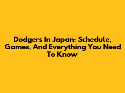 Dodgers In Japan: Schedule, Games, And Everything You Need To Know