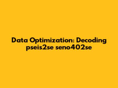 Data Optimization: Decoding Pseis2se Seno402se