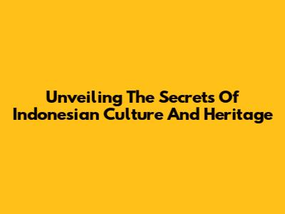 Unveiling The Secrets Of Indonesian Culture And Heritage