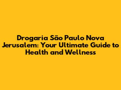 Hey there, health enthusiasts! Today, we're diving deep into the world of Drogaria São Paulo Nova Jerusalem. This isn't just your average pharmacy, folks; it's a vital part of the Nova Jerusalem community, offering a wide array of products and services designed to keep you feeling your best. Whether you're a long-time resident or just passing through, understanding what Drogaria São Paulo Nova Jerusalem has to offer can be a game-changer for your well-being. So, grab a comfy seat, and let's explore everything you need to know about this fantastic establishment.