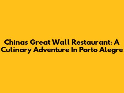 China's Great Wall Restaurant: A Culinary Adventure In Porto Alegre