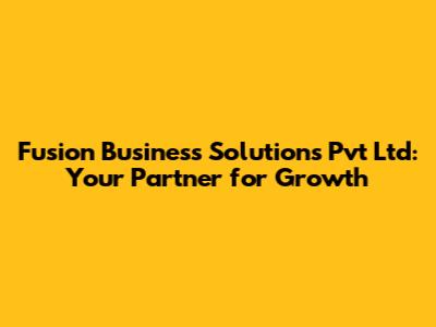 Fusion Business Solutions: Your Partner For Growth