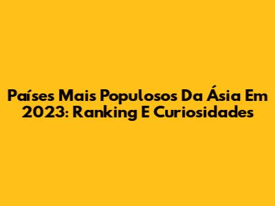 Países Mais Populosos Da Ásia Em 2023: Ranking E Curiosidades