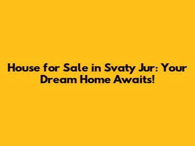 Hey guys, are you dreaming of a new place to call home? Have you ever considered the charming town of Svätý Jur? If you're nodding your head, then you're in the right place! We're diving deep into the exciting world of houses for sale in Svätý Jur, Slovakia. This guide is your ultimate companion, covering everything from the beauty of this location to the nitty-gritty of finding your perfect property. So, buckle up, grab a coffee (or a beer, no judgment!), and let's explore how you can find your dream home in Svätý Jur. We'll explore why this area is so appealing, the types of properties available, and, of course, the key steps you need to take to make that dream a reality.