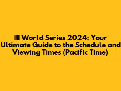 Hey sports fanatics! Are you ready for the III World Series 2024? If you're anything like me, you're already counting down the days until the first pitch. This year promises to be a thriller, packed with intense competition, jaw-dropping plays, and unforgettable moments. This article will be your all-in-one guide to the III World Series 2024 schedule, specifically for those of us tuning in from the Pacific Time Zone. We'll dive deep into the game times, potential matchups, and where you can catch all the action. So, grab your snacks, settle into your favorite spot on the couch, and let's get you prepped for an amazing series. Let's make sure you don't miss a single second of the excitement! From nail-biting finishes to spectacular home runs, the III World Series always delivers, and knowing the schedule is key to enjoying every bit of it.