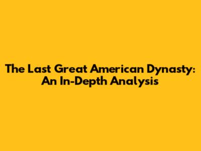 The Last Great American Dynasty: An In-Depth Analysis