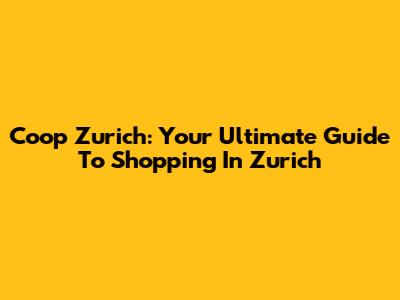 Coop Zurich: Your Ultimate Guide To Shopping In Zurich