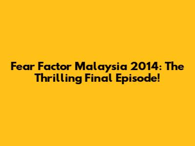 Fear Factor Malaysia 2014: The Thrilling Final Episode!