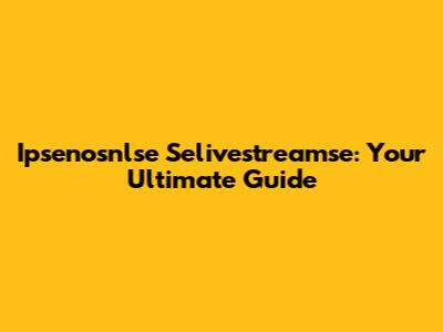Ipsenosnlse Selivestreamse: Your Ultimate Guide
