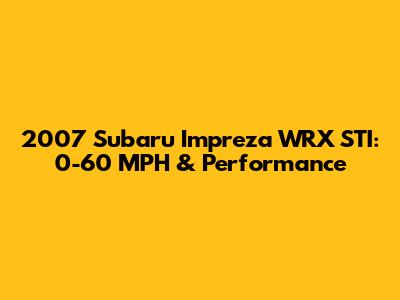 2007 Subaru Impreza WRX STI: 0-60 MPH & Performance