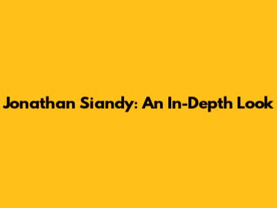 Jonathan Siandy: An In-Depth Look