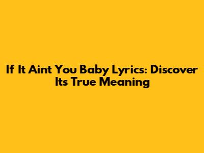 If It Ain't You Baby Lyrics: Discover Its True Meaning