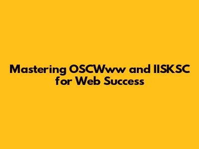 Mastering OSCWww And IISKSC For Web Success