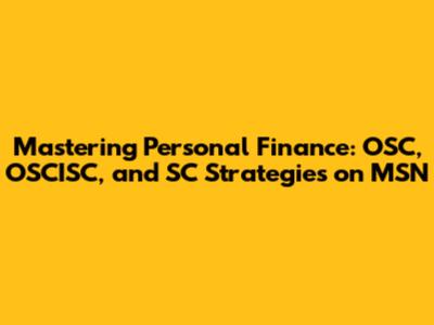 Mastering Personal Finance: OSC, OSCISC, And SC Strategies On MSN