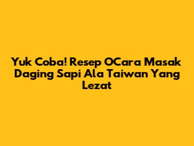Yuk Coba! Resep O'Cara Masak Daging Sapi Ala Taiwan Yang Lezat