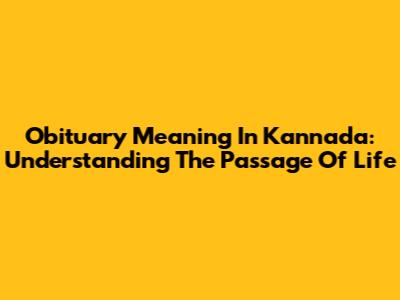 Obituary Meaning In Kannada: Understanding The Passage Of Life