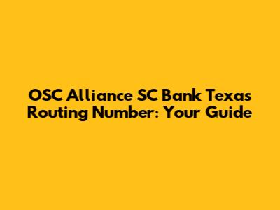 OSC Alliance SC Bank Texas Routing Number: Your Guide