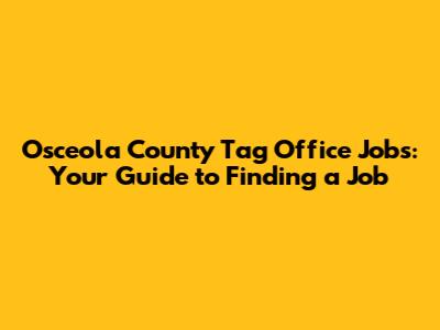 Are you looking for Osceola County Tag Office jobs? You've come to the right place! Finding a job can be tough, but understanding where to look and what to expect can make the process a whole lot smoother. This guide is designed to provide you with all the information you need to navigate the job market at the Osceola County Tag Office. We’ll explore the types of jobs available, the skills and qualifications you’ll need, and how to make your application stand out. So, let’s dive in and get you closer to landing your dream job!