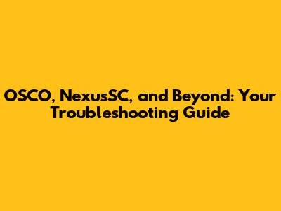OSCO, NexusSC, And Beyond: Your Troubleshooting Guide