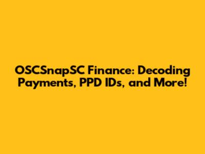 OSCSnapSC Finance: Decoding Payments, PPD IDs, And More!