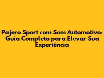 Pajero Sport com som automotivo: Se você é apaixonado por carros e adora um som de qualidade, este guia é para você! Vamos mergulhar no universo do som automotivo para a Pajero Sport, explorando tudo o que você precisa saber para transformar seu veículo em uma verdadeira experiência sonora. De dicas sobre equipamentos a instalações personalizadas, passando por informações sobre segurança e legislação, prepare-se para uma jornada completa no mundo do som automotivo.