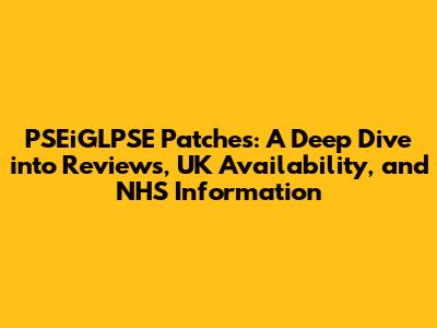 PSEiGLPSE Patches: Reviews, UK Availability, And NHS Insights