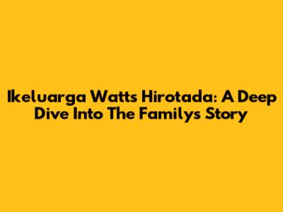 Ikeluarga Watts Hirotada: A Deep Dive Into The Family's Story