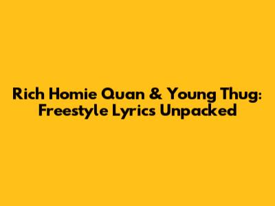 What's good, music lovers? Ever wondered what happens when two of Atlanta's finest, Rich Homie Quan and Young Thug, hop on a track for a freestyle session? It's pure magic, guys! These guys aren't just rappers; they're poets of the modern age, weaving intricate rhymes and unpredictable flows that keep us hooked. In this article, we're diving deep into the raw, unadulterated energy of their freestyle lyrics. We'll dissect their wordplay, explore their signature styles, and try to capture the lightning in a bottle that is a Rich Homie Quan and Young Thug freestyle. So grab your headphones, turn up the volume, and get ready to experience the lyrical prowess of two hip-hop heavyweights.