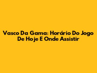 Vasco Da Gama: Horário Do Jogo De Hoje E Onde Assistir
