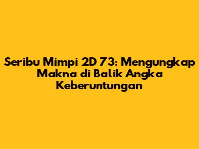 Guys, pernah nggak sih kalian penasaran sama arti di balik mimpi yang muncul di kepala? Terutama kalau angka "73" itu nongol di mimpi kalian, apa sih artinya? Nah, kali ini kita bakal ngupas tuntas soal Seribu Mimpi 2D 73. Ini bukan cuma sekadar angka, tapi bisa jadi petunjuk penting buat kehidupan kalian, lho! Jadi, siap-siap ya, kita bakal menyelami dunia tafsir mimpi yang penuh misteri dan makna tersembunyi. Siapa tahu, angka 73 ini adalah kunci buat kalian membuka pintu rezeki, cinta, atau bahkan petualangan baru yang nggak terduga. Yuk, langsung aja kita bedah apa aja sih kemungkinan arti dari angka 73 dalam konteks seribu mimpi.