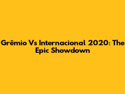Grêmio Vs Internacional 2020: The Epic Showdown