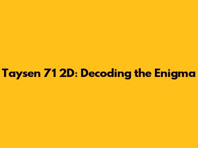 Taysen 71 2D: Decoding The Enigma