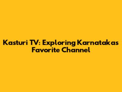 Kasturi TV: Exploring Karnataka's Favorite Channel