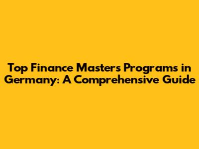 Top Finance Masters Programs In Germany