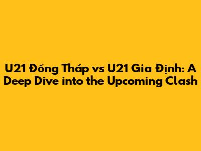 U21 Đồng Tháp Vs U21 Gia Định: Match Preview & Analysis