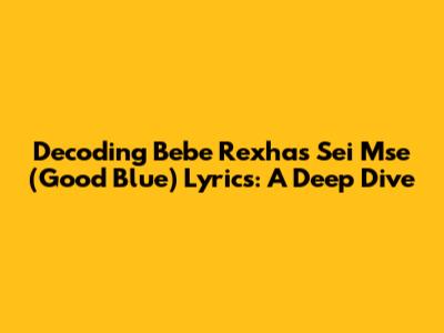Hey music lovers! Ever found yourself completely captivated by a song? That's precisely how many of us feel about Bebe Rexha's track, "Sei Mse (Good Blue)". It’s a banger, right? The infectious beats and Bebe's incredible vocals make it an instant earworm. But beyond the catchy melody lies a deeper meaning, a story waiting to be uncovered within the lyrics. In this article, we're going to dive headfirst into the "Sei Mse (Good Blue)" lyrics, breaking down the words, exploring their potential meanings, and uncovering the emotional core of this awesome song. Get ready to have your understanding of this track completely transformed! We're not just listening; we're analyzing. We’re going to explore the different interpretations that can be pulled from the lyrics, considering everything from the song's context to its potential influences. Let’s get started, shall we?