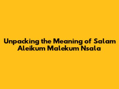 "Salam Aleikum Malekum Nsala" is far more than a simple greeting; it is an important part of the cultural and social fabric of many communities. The phrase symbolizes the values of peace, respect, and unity, influencing daily interactions and contributing to societal harmony. Its widespread use highlights the enduring significance of these principles across different cultures and traditions.