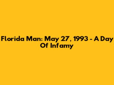 Florida Man: May 27, 1993 - A Day Of Infamy