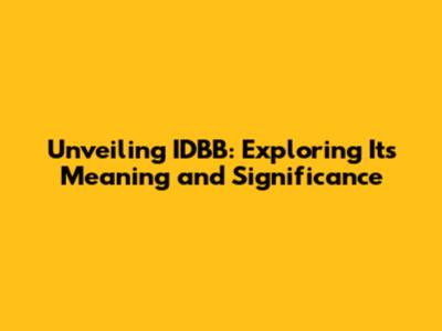 Unveiling IDBB: Exploring Its Meaning And Significance