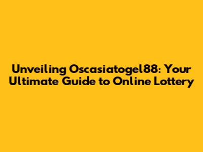 Unveiling Oscasiatogel88: Your Guide To Online Lottery