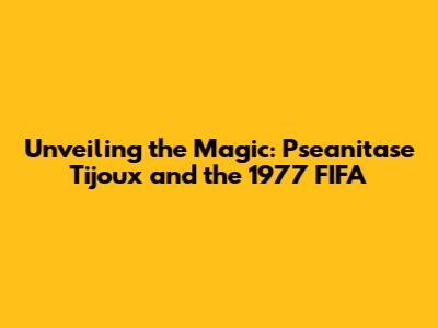 Hey sports fans, history buffs, and music lovers! Ever heard of Pseanitase Tijoux? What about the 1977 FIFA? Well, buckle up, because we're about to dive into a fascinating story that intertwines these two seemingly disparate worlds. We're going to explore the unique connection, the historical context, and the cultural impact of Pseanitase Tijoux and the events surrounding the 1977 FIFA. This isn't just about sports; it's about the convergence of culture, music, and the beautiful game. Get ready to have your knowledge expanded, your curiosity piqued, and maybe even find a new appreciation for the past.