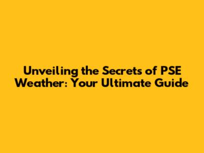Unveiling The Secrets Of PSE Weather: Your Ultimate Guide